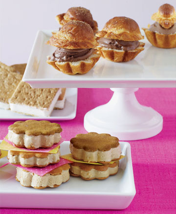Biscoitos de gengibre complementam bem os sabores doces, como a baunilha. Amy sugere deixar o sorvete amolecer um pouco antes de montar os sanduíches. Use uma espátula para acompanhar o contorno dos biscoitos. Volte ao freezer por mais 2 horas antes de servir.